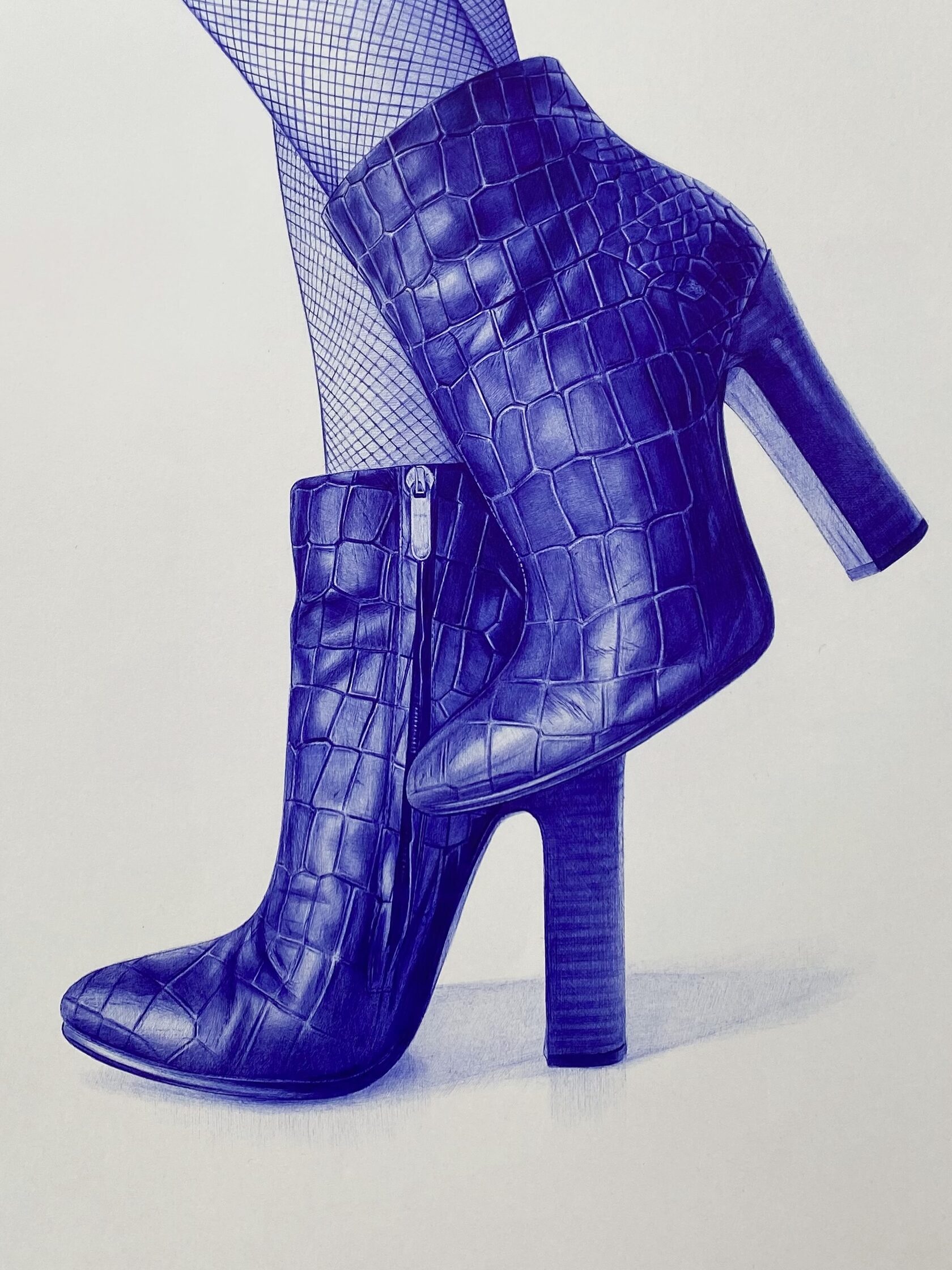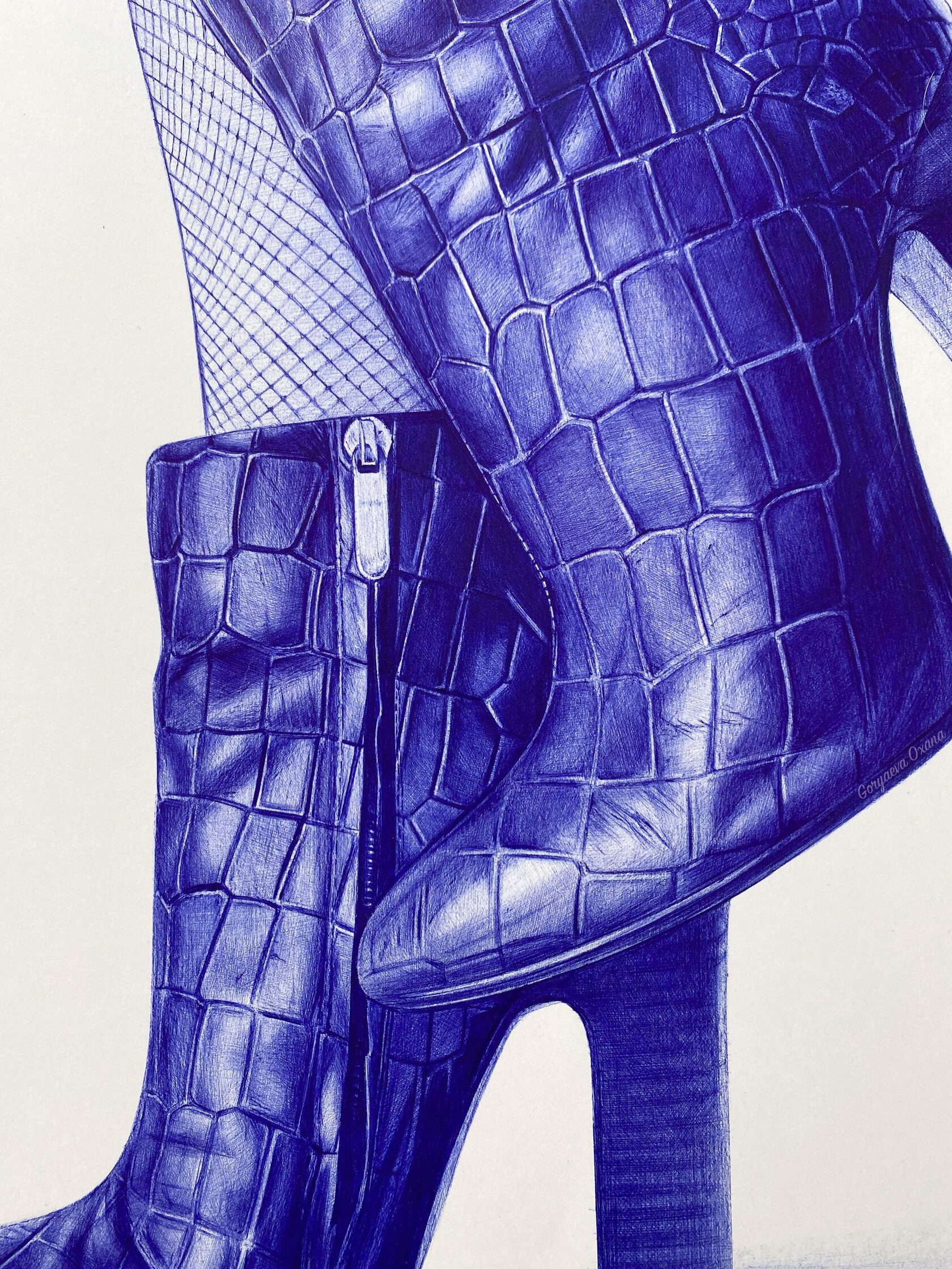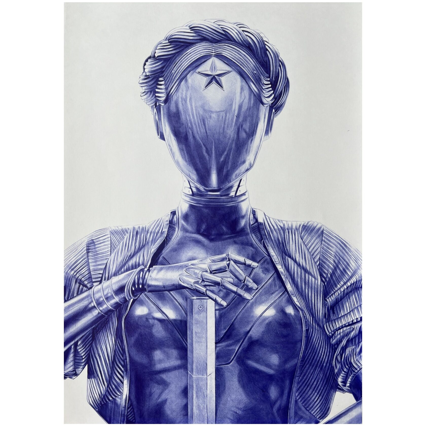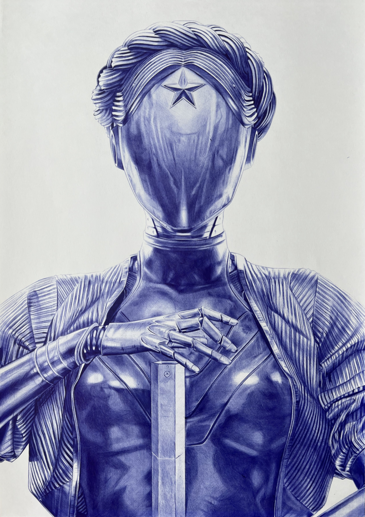Работа выполнена черной шариковой ручкой на бумаге плотностью 200г/м2.