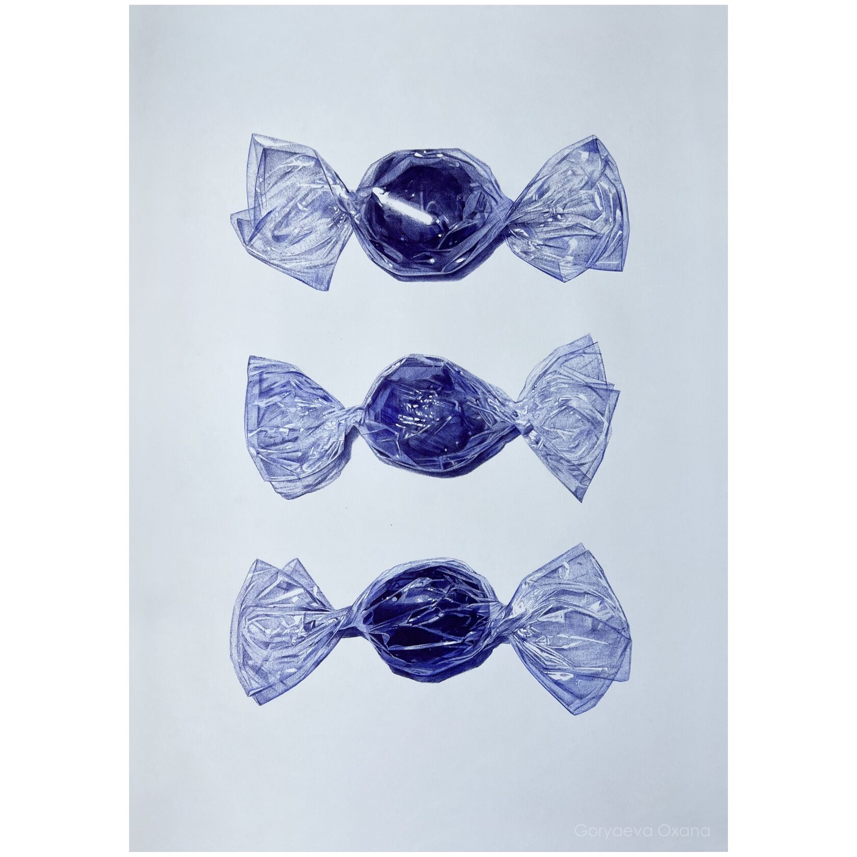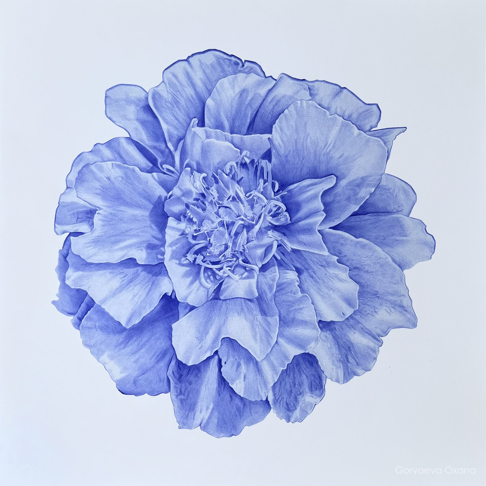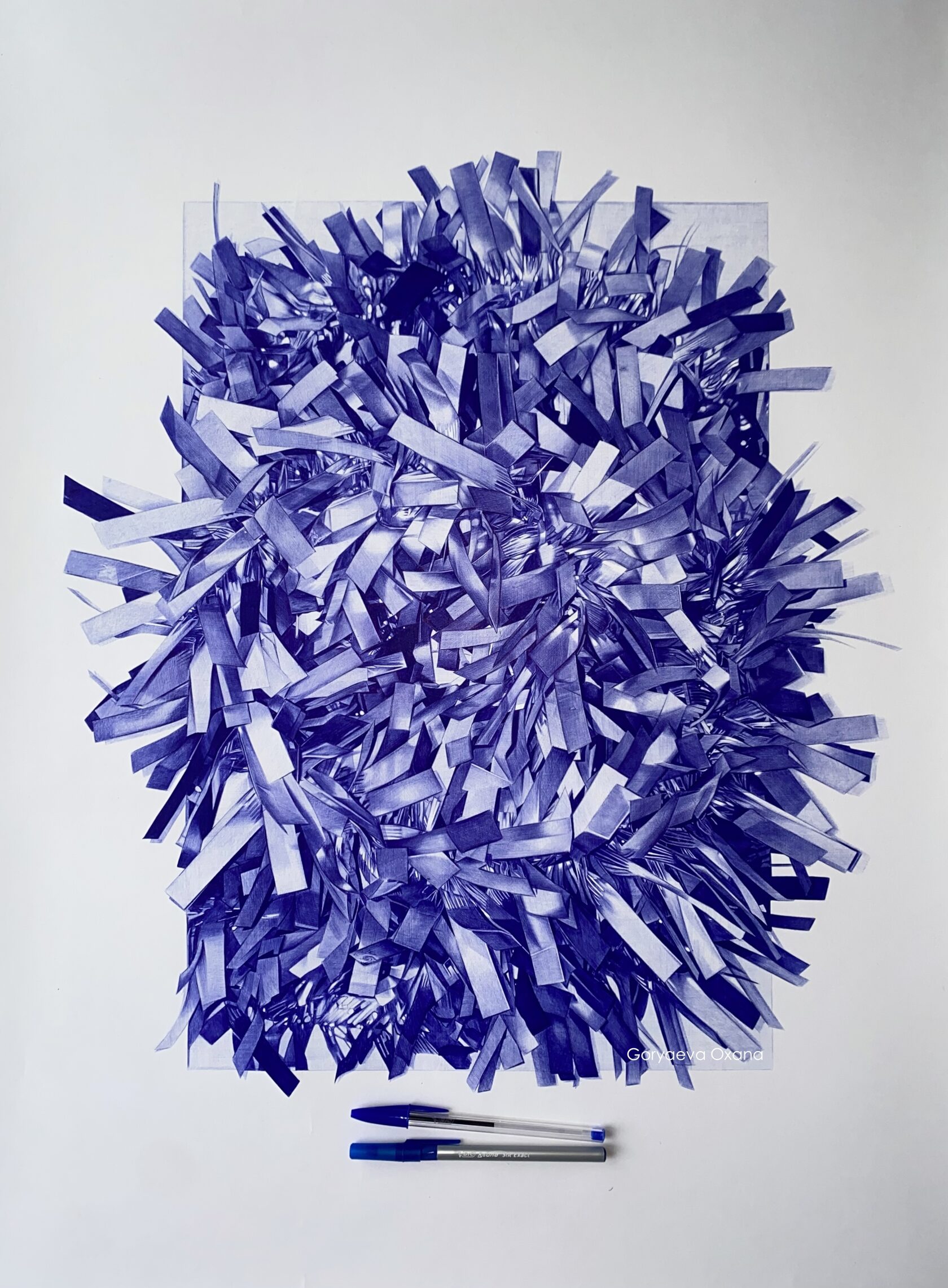 Работа выполнена синей шариковой ручкой на бумаге плотностью 200г/м2.