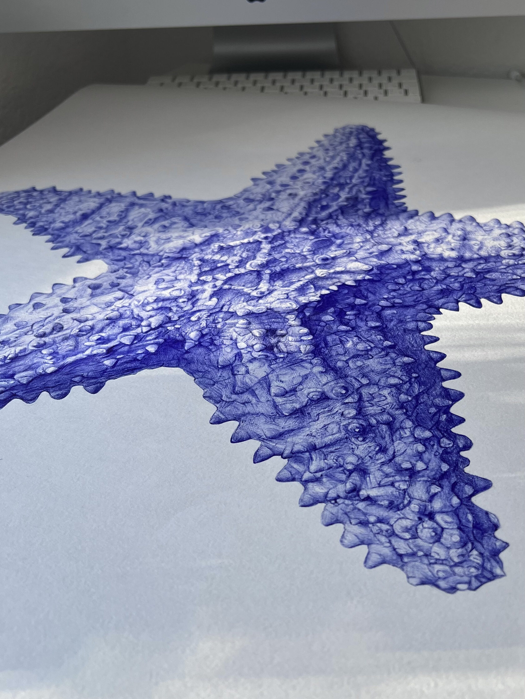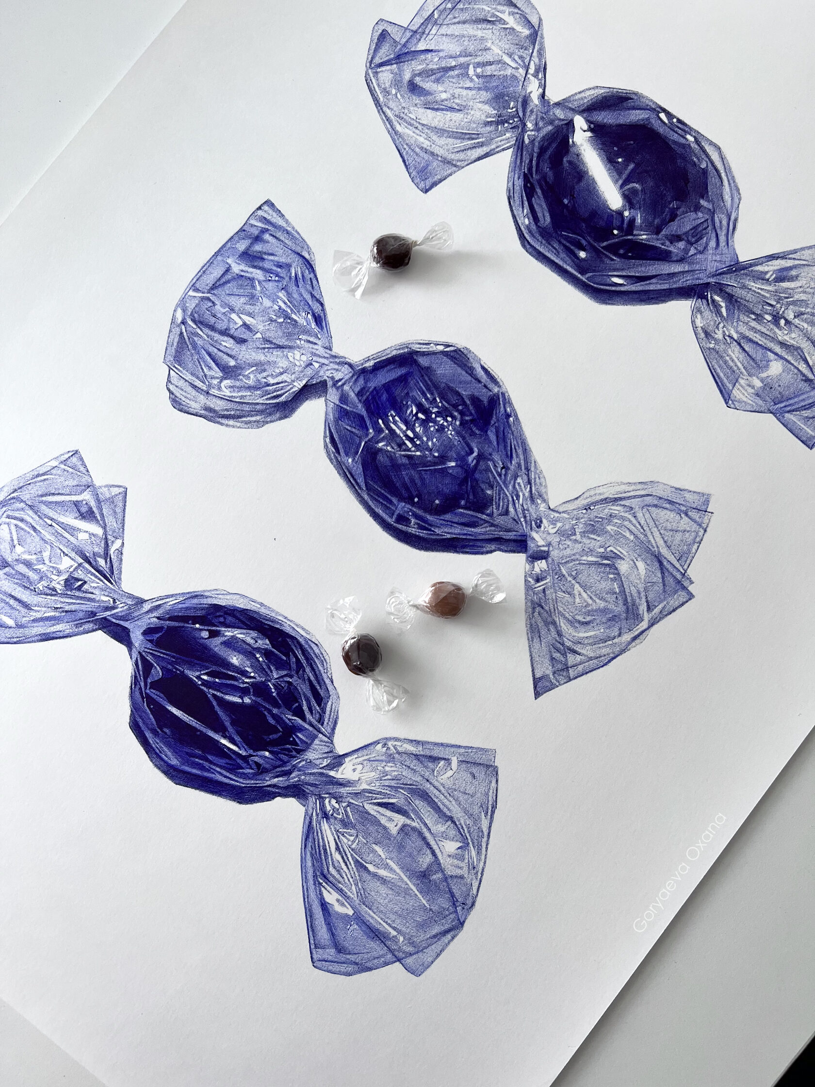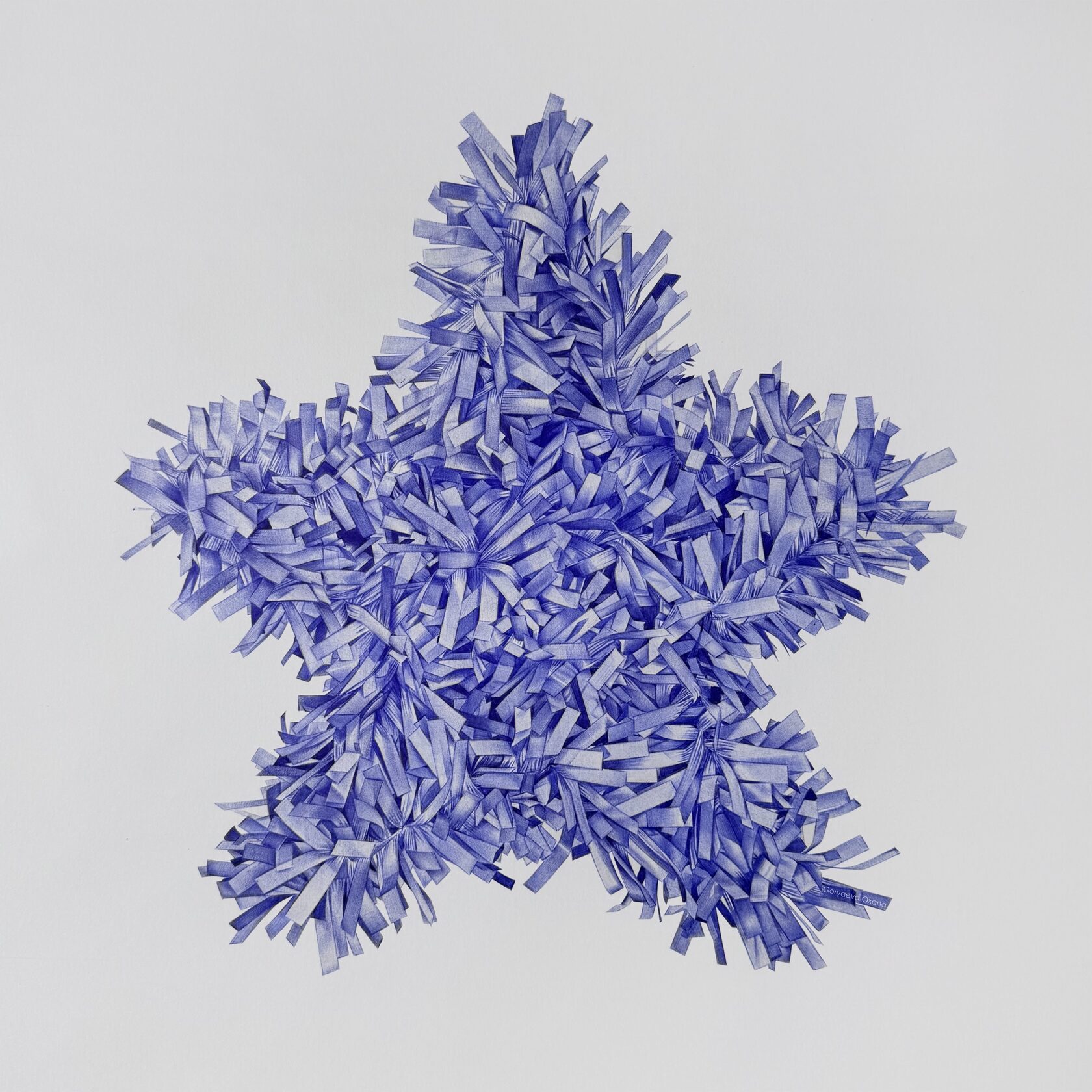 Работа выполнена синей шариковой ручкой на бумаге плотностью 200г/м2.