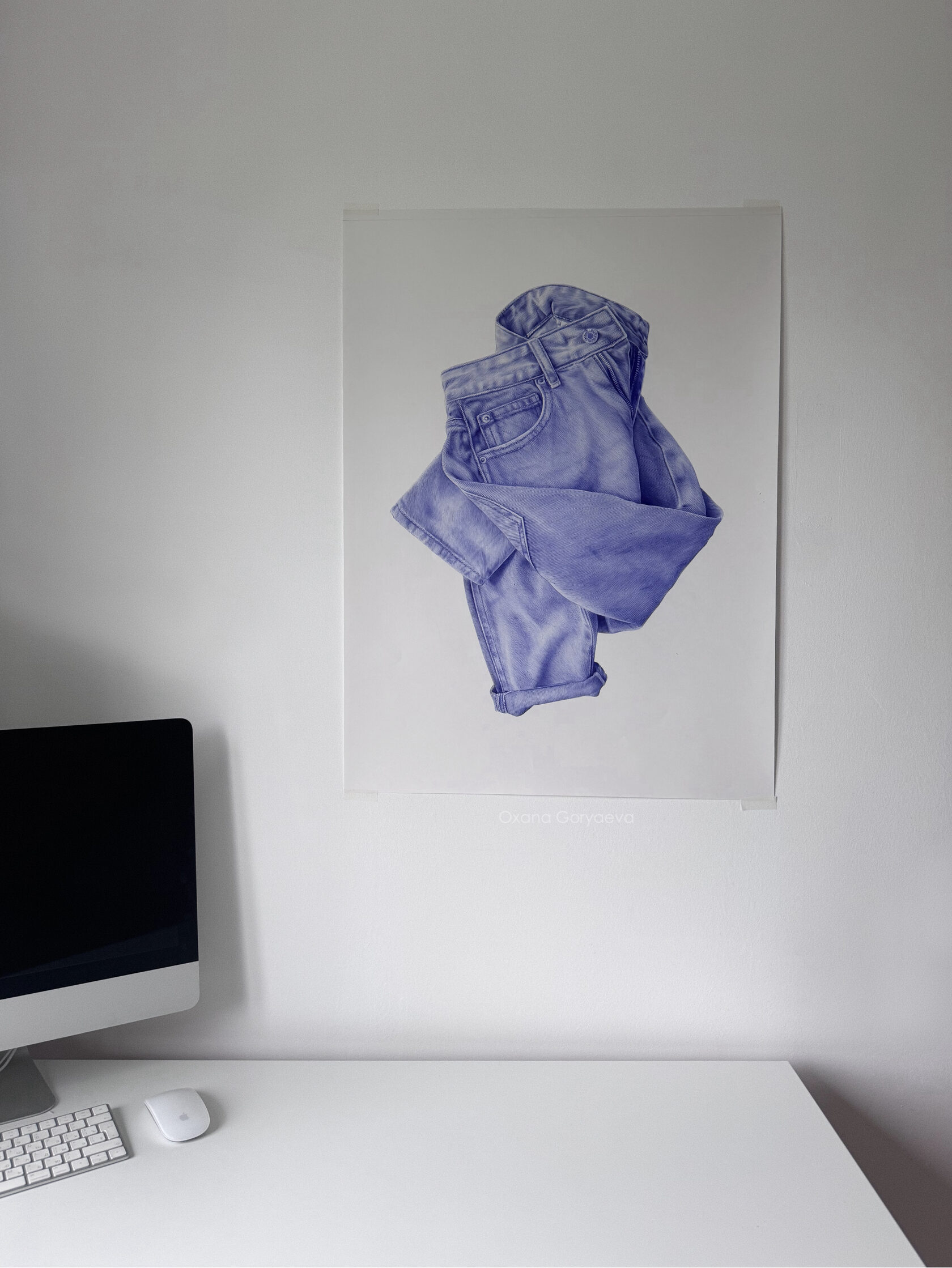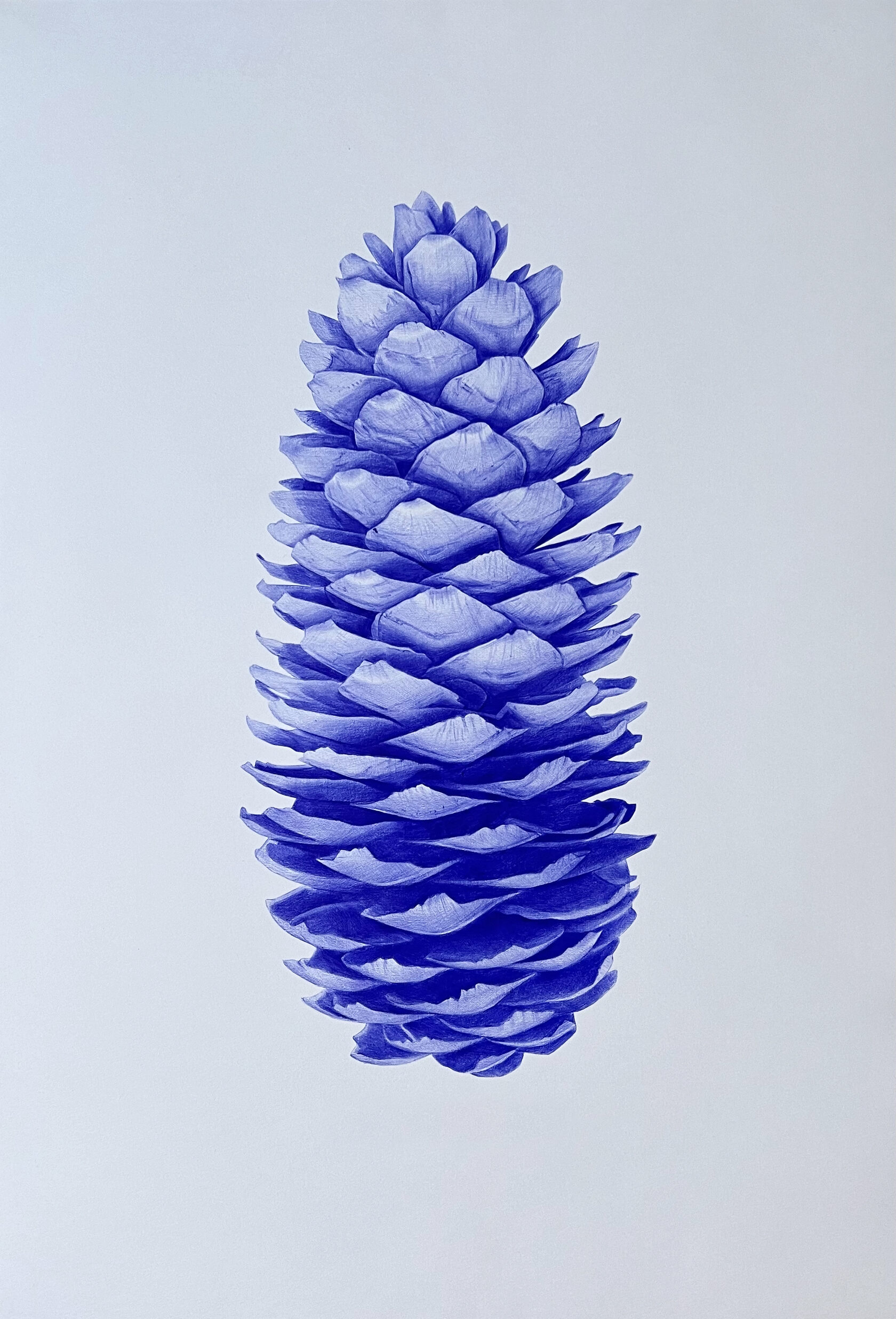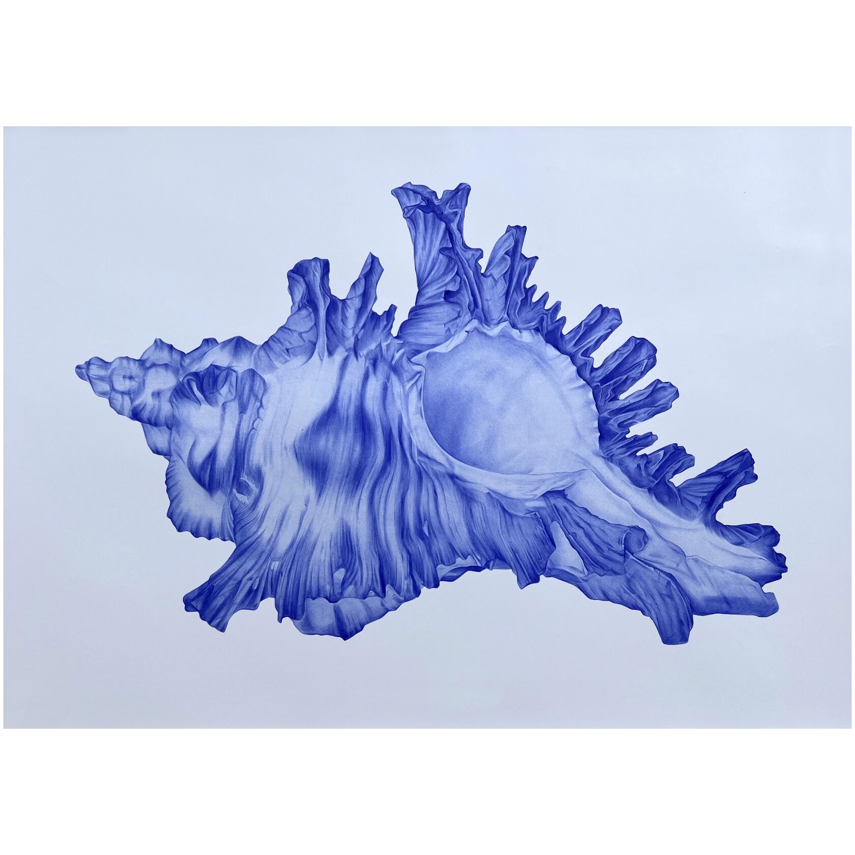 "Улыбка" Мягкая, сияющая, невесомая - как мишура. В этой улыбке - светлые моменты, тёплые слова, смешные истории. Иногда достаточно одного взгляда, чтобы она появилась снова. 60х80см Серия «Эмоции» Работа выполнена синей шариковой ручкой на бумаге плотностью 200г/м2. 2024г Оформлена в белую раму.