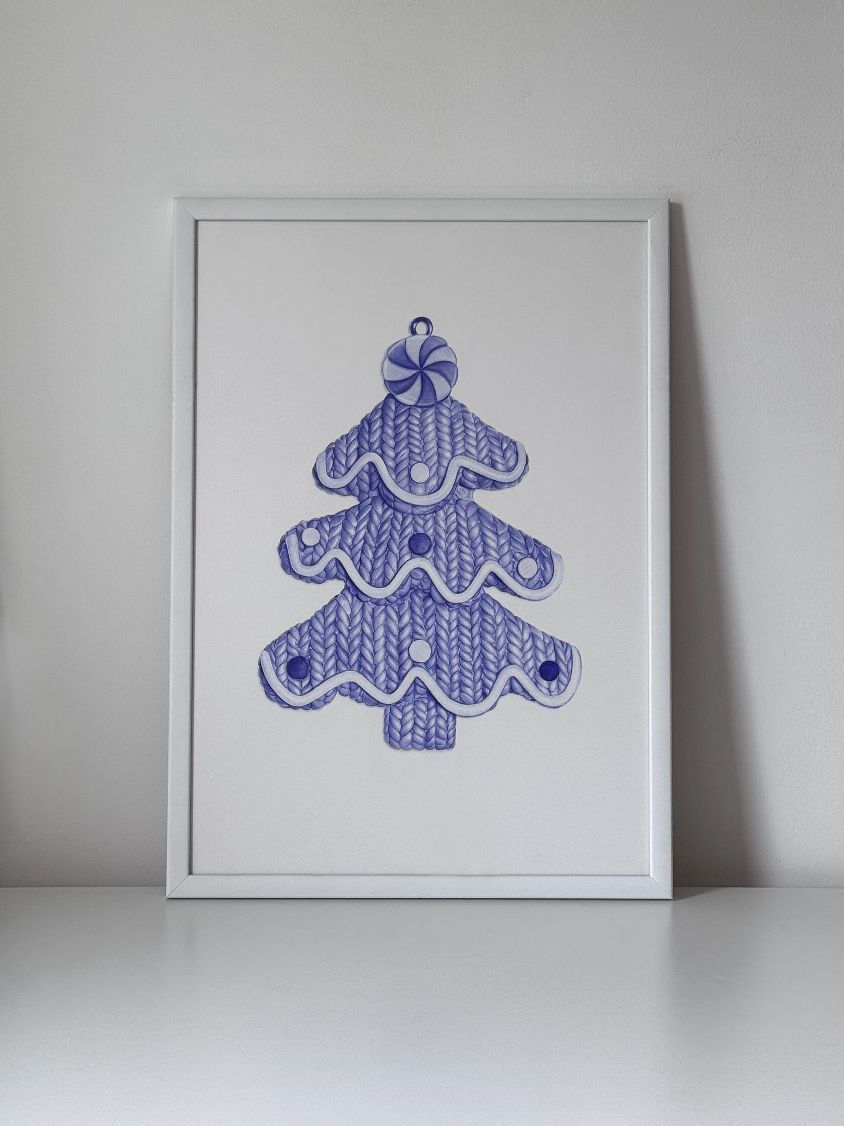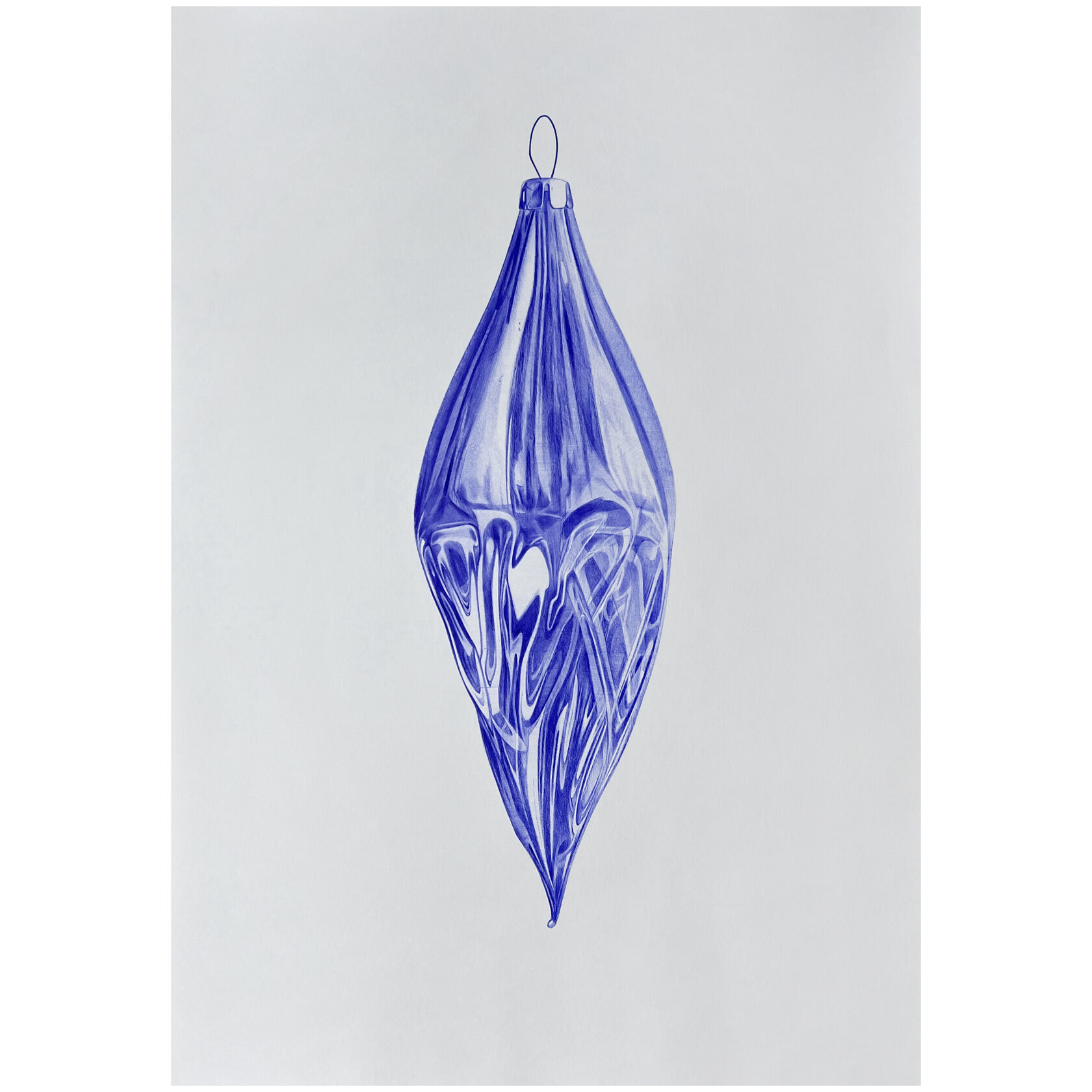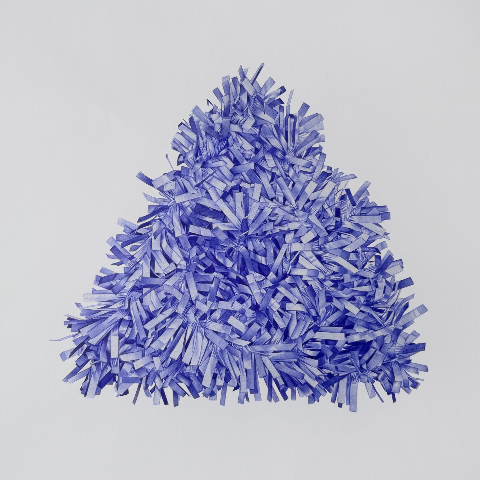 «Баланс» Мишура, собранная в треугольник символизирует баланс, устойчивость, равновесие между сторонами жизни. 40х40см Серия «Мишура символов». Работа выполнена синей шариковой ручкой на бумаге плотностью 200г/м2. 2024г Оформлена в белую раму.