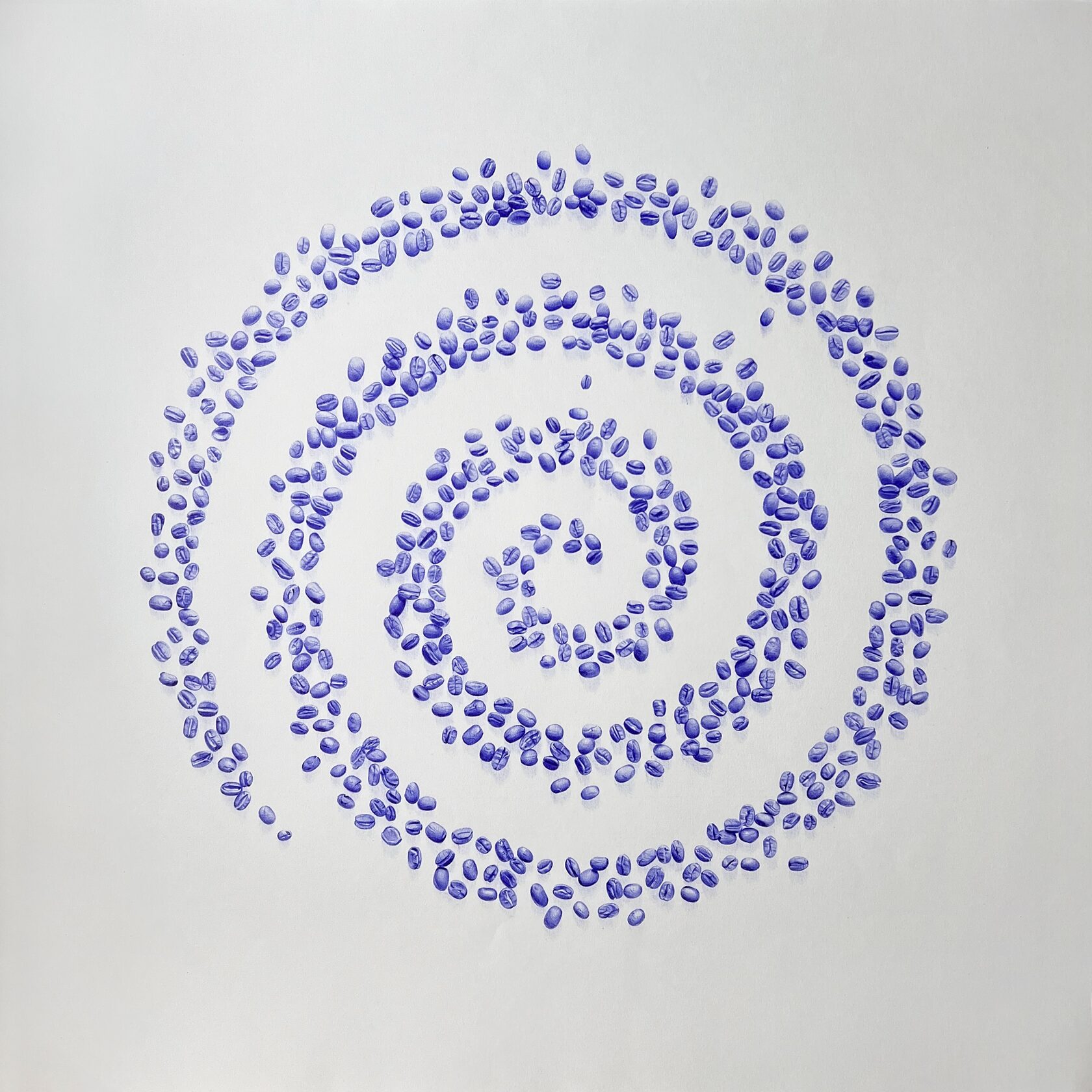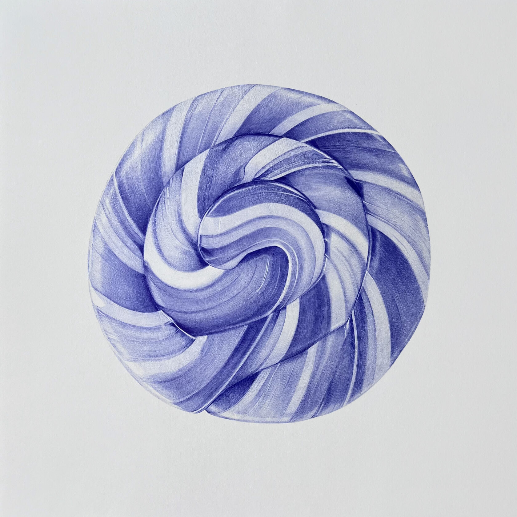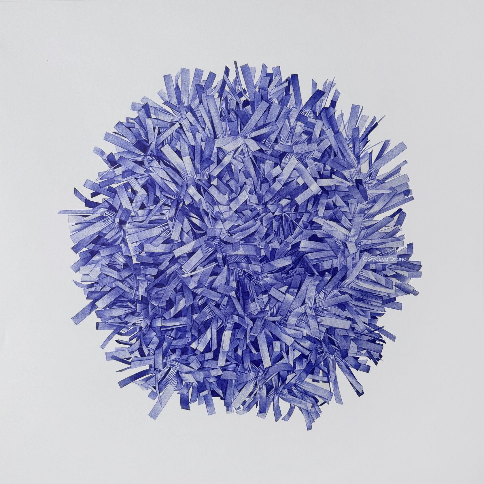 «Гармония» Мишура, хаотичная и мерцающая, собранная в круг целостности и гармонии. Словно ты разложил все пережитые события и мысли в голове по полочкам и теперь ты собран, спокоен. Синий цвет усиливает ощущение ясности, покоя и тишины. 40х40см Серия «Мишура символов». Работа выполнена синей шариковой ручкой на бумаге плотностью 200г/м2. 2024г Оформлена в белую раму.